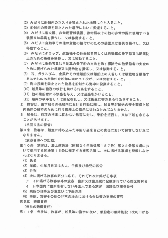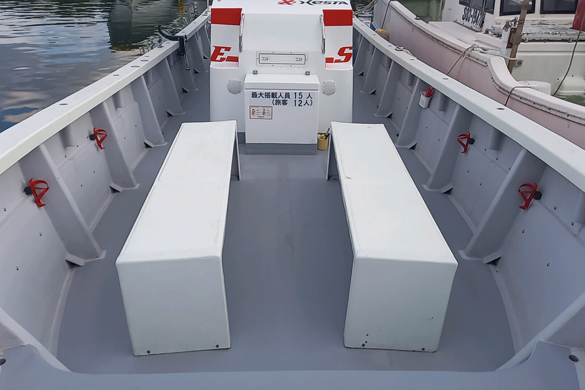 船舶について 全長11メートル全幅2.6メートル2.9トン最大搭載人員15名(内船員3) その他設備 GPSプロッター レーダー 個室トイレ ドリンクホルダー多数 USB付ラジオ 自動膨張式ライフジャケット お子様用ライフジャケット(各サイズご用意しております) その他法廷備品一式 一般不定期航路 登録通知書 内航一般不定期航路事業 国土交通省 中部運輸局 中運海旅第113号 東海一不第23号 安全統括管理者1名 運行管理者3名