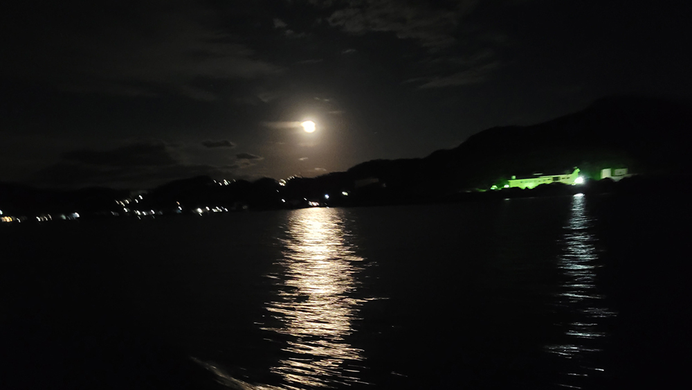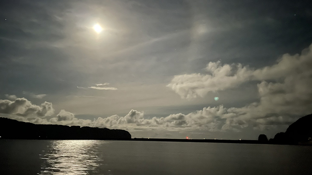 闇夜の晩は雲さえなければ満点の星空、月夜の晩は海面に映るムーンロードも綺麗です。